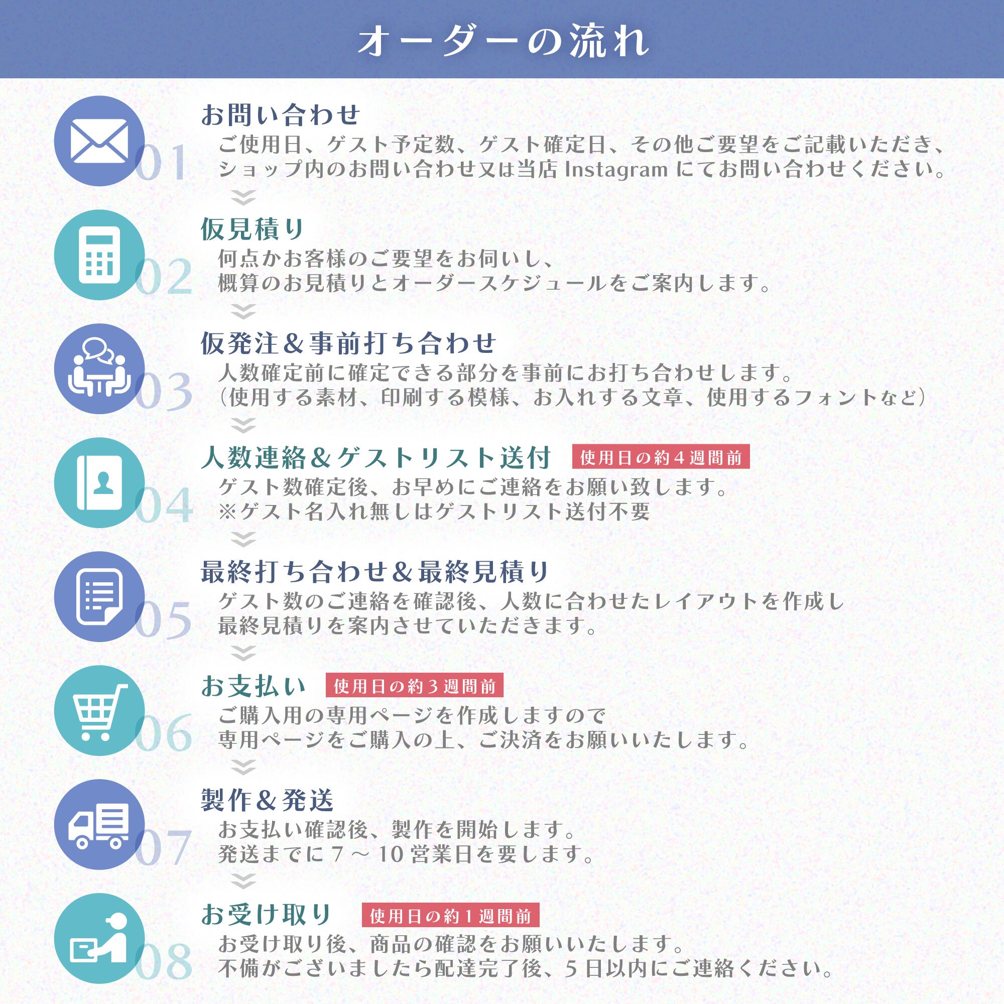 オーダーの流れは画像5枚目をご確認ください。