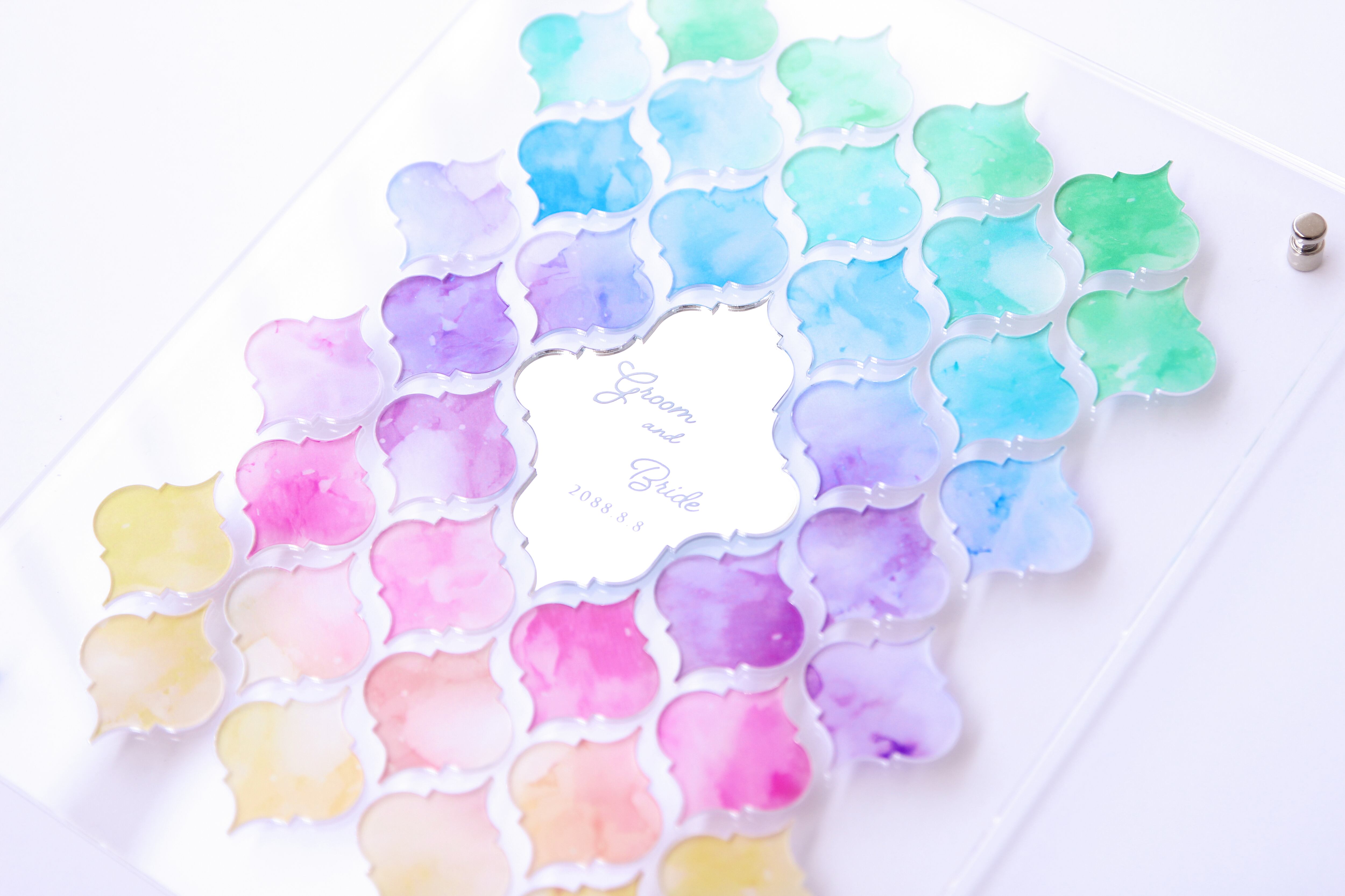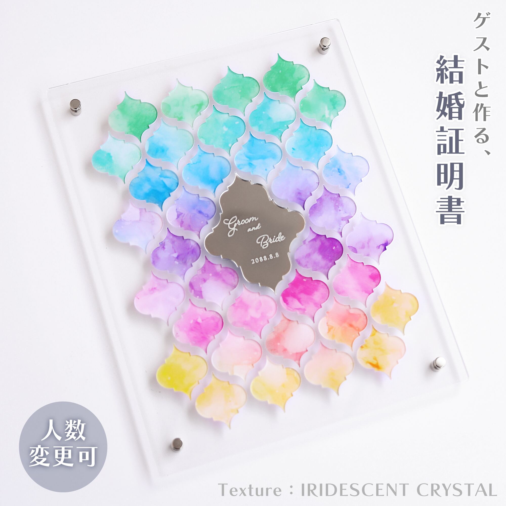 【人数変更可能】ゲスト参加型 結婚証明書≪IRIDESCENT CRYSTAL≫ アクリル製 サイズ変更可能/カラー変更可能/チップ形状変更可能 ウェディング ウェルカムボード 結婚式モロッカン型チップ式はめ込み式
