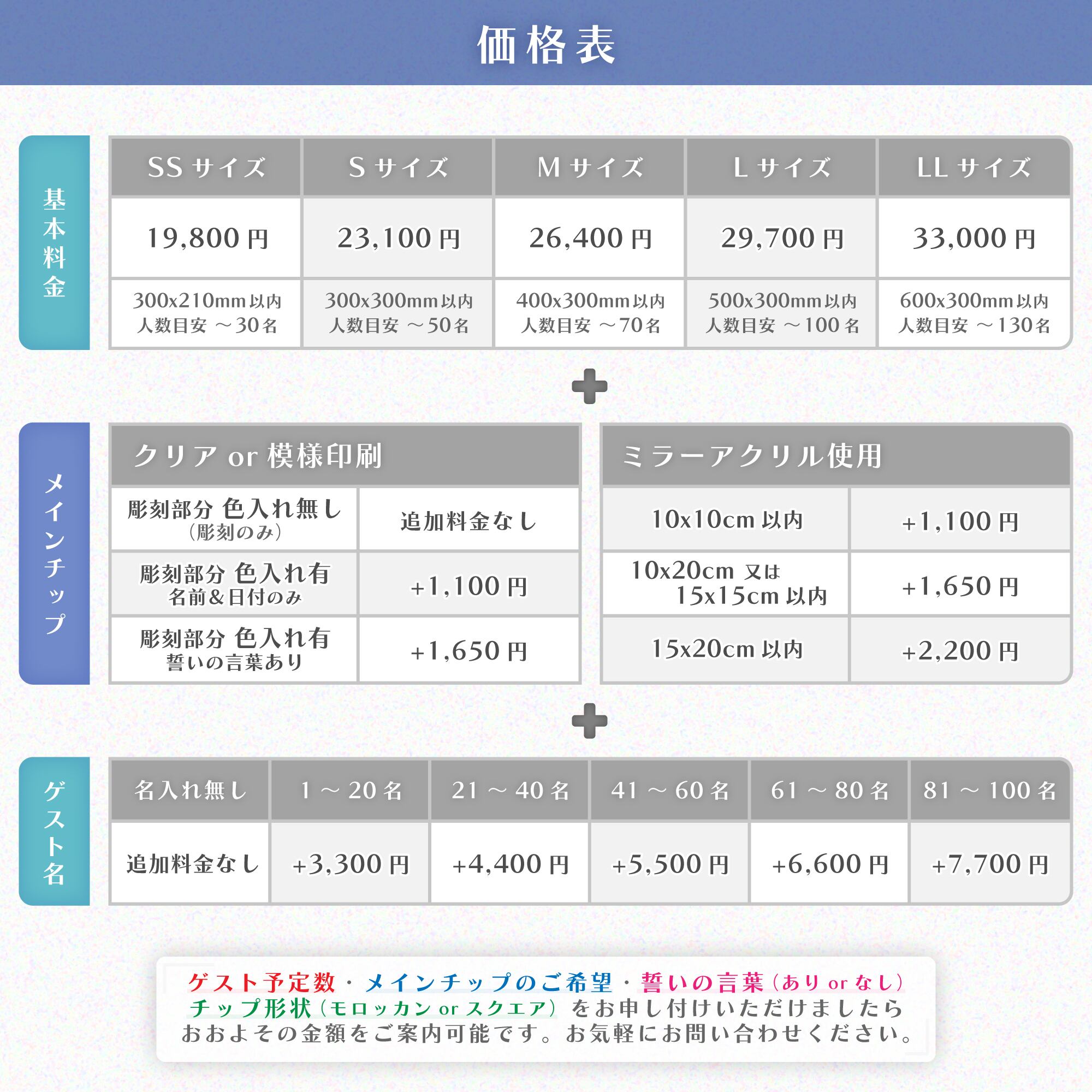 サイズ、レイアウト(ゲストチップ36枚)で発送をさせて頂きます。